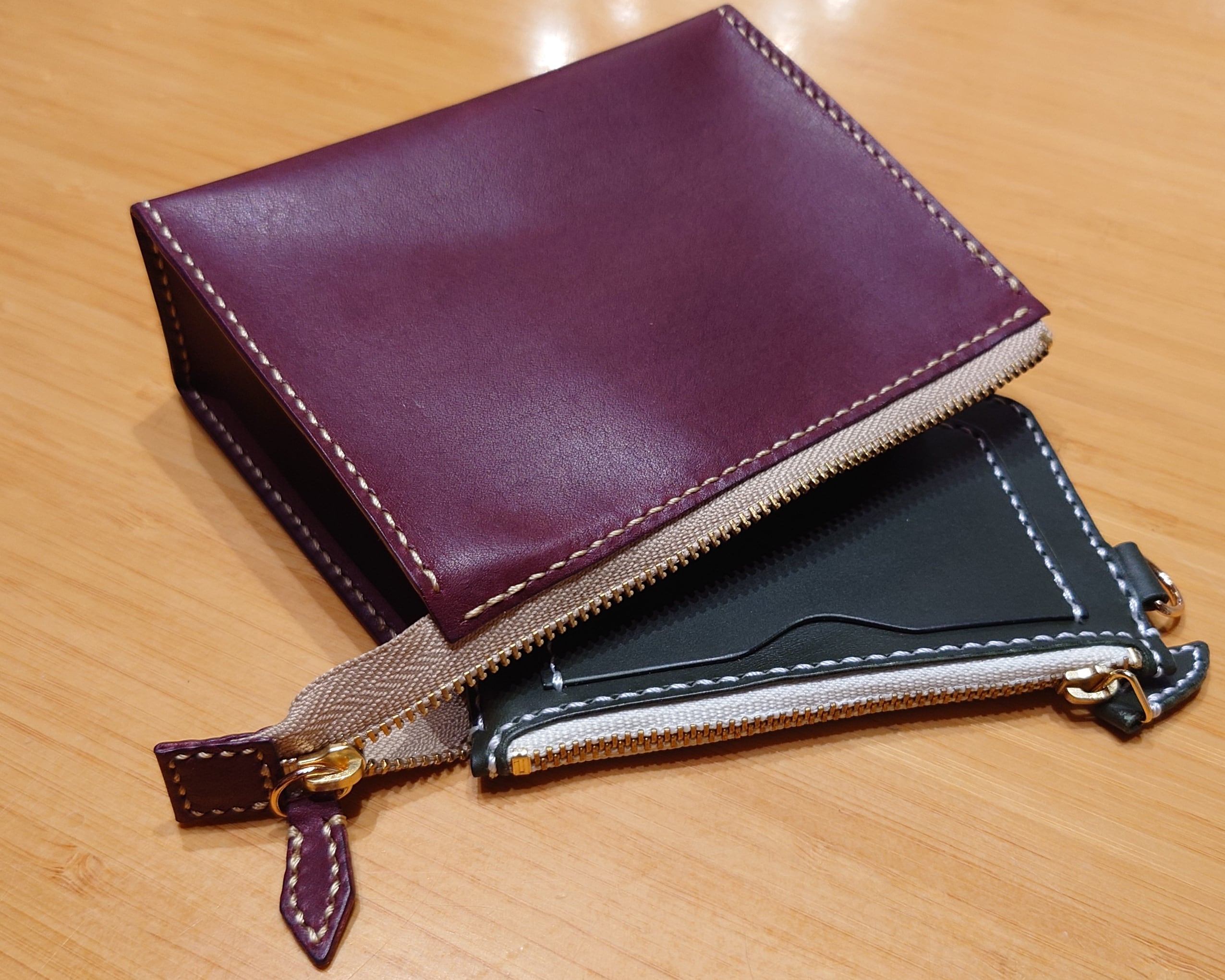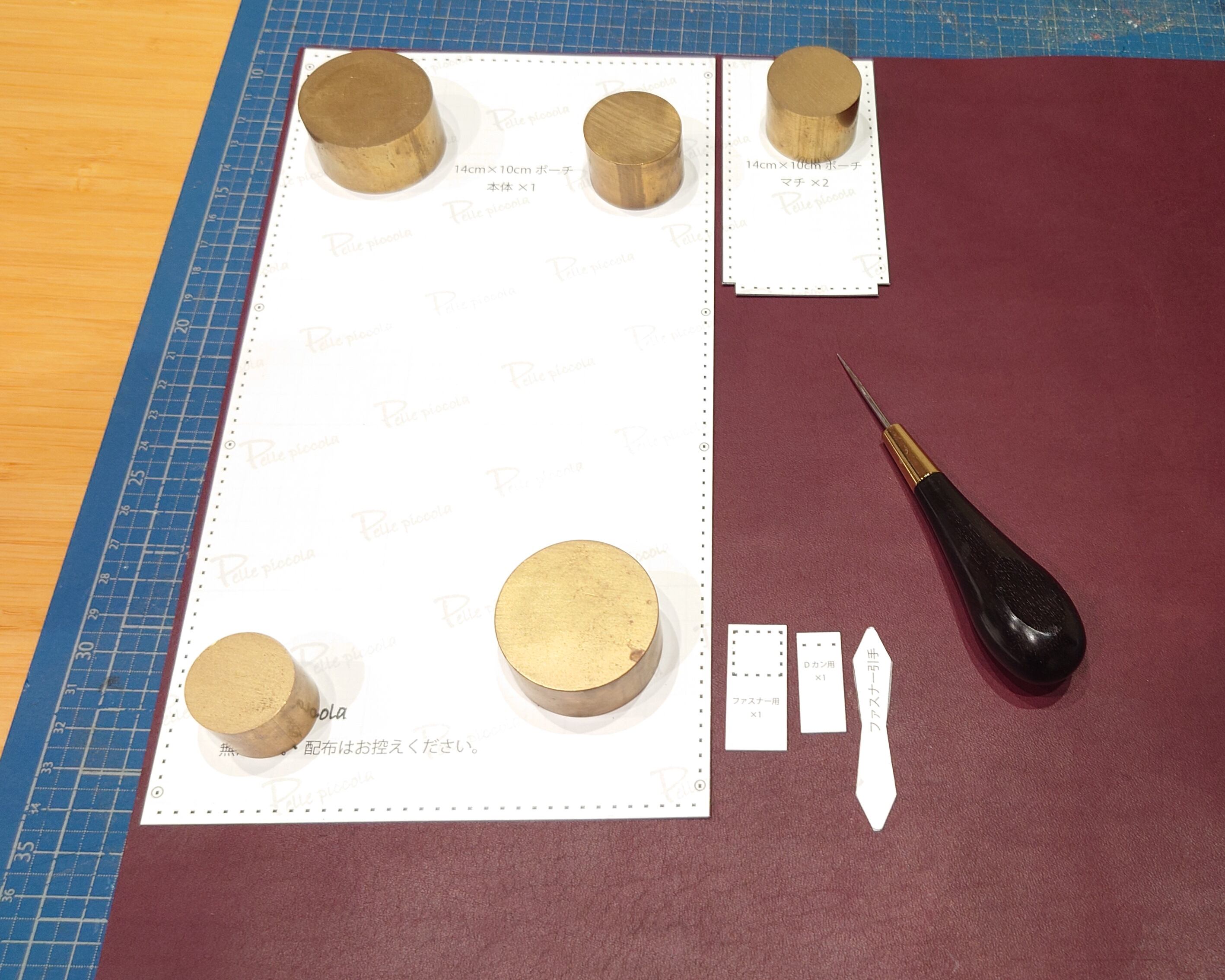 A4サイズのレザーでつくる、横マチ付きポーチの型紙と作り方をまとめています。